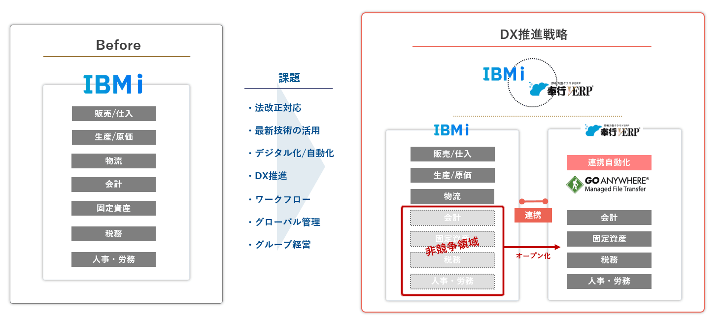 IBMのパックシリーズ(iSeries Site)を長年使っています。法改正が起きる度に社内SEに頼んでソースプログラムを改修する必要があり、近年は高負荷の状態が続いていました。 | ![]() ![]() |